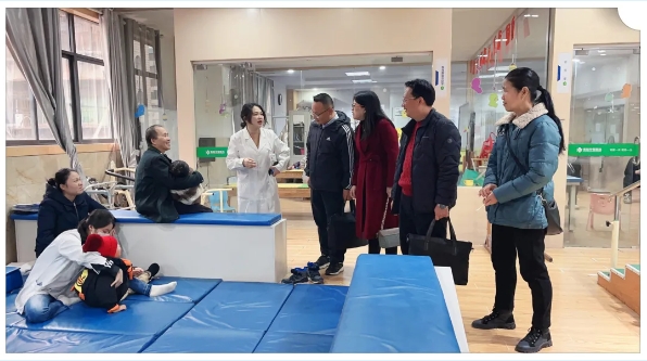 12月13日上午,衡南縣駐縣人大紀(jì)檢組組長(zhǎng)邱中普、衡南縣財(cái)政局綜合股股長(zhǎng)羅小華及衡南縣殘聯(lián)副理事長(zhǎng)劉巧云、康復(fù)股長(zhǎng)石正喜等領(lǐng)導(dǎo)一行來(lái)我院康復(fù)醫(yī)學(xué)科對(duì)殘疾兒童康復(fù)救助項(xiàng)目的進(jìn)行全面督查和指導(dǎo)。在康復(fù)醫(yī)學(xué)科主任王靈芝的陪同下,督導(dǎo)組來(lái)到了醫(yī)院的兒童康復(fù)區(qū)進(jìn)行實(shí)地考察。詳細(xì)了解殘疾兒童日常治療情況,與殘疾兒童