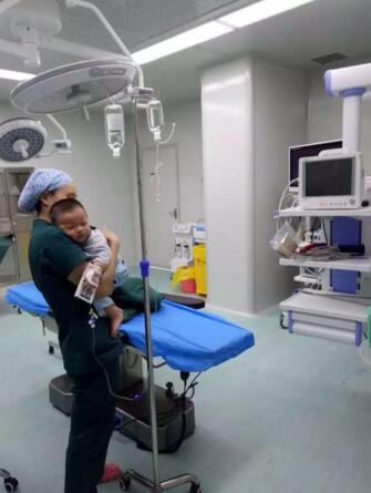這是8月15日手術(shù)室的一個(gè)場情景,照片里抱著孩子的是手術(shù)室護(hù)士陽倩,而懷里這個(gè)幼兒叫楠楠,八個(gè)月,因?yàn)橐霾⒅阜蛛x術(shù)+游離皮片移植術(shù),在剛進(jìn)手術(shù)室時(shí)特別沒有安全感,一直在哭......陽倩像"媽媽"一樣抱起了他,楠楠在“天使媽媽”的懷里慢慢安靜下來了......