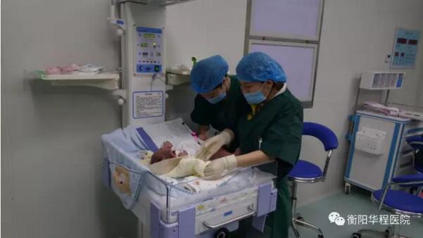手術(shù)室中傳來寶寶清脆的哭泣,兩位醫(yī)護(hù)人員為寶寶穿好衣服,同時(shí)記錄寶寶的出生信息。