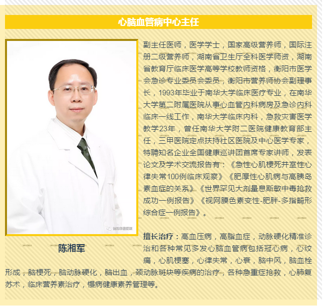 “都在講上醫(yī)治未病,為什么要等到疾病發(fā)生以后再去治療呢?”陳湘軍說這句話時透著堅韌。在他看來,心腦血管疾病需要全生命周期的健康管理,如果能夠讓人們建立提早預(yù)防心腦血管疾病意識就能很好控制這類疾病的發(fā)生,達到“未病先防”“已病防變”“已變防漸”,至少減少50%的發(fā)病人數(shù),避免一半以上的人過早死亡,我們與營養(yǎng)學科,康復(fù)運動學科,心理醫(yī)學科等學科聯(lián)動,最終使人們少得病,不得重病,使健康壽命延長,獲得健康美好生活品質(zhì)和真正的健康幸福感。