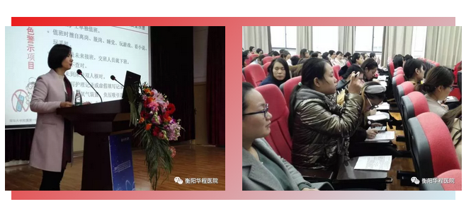 12月7日下午16:00由護(hù)理組織開展的《安全至上 重在預(yù)防》護(hù)理工作培訓(xùn)在九樓多功能廳舉行,本次培訓(xùn)特邀請了南華附一醫(yī)院護(hù)理部唐益民主任來我院授課,全院護(hù)士到場參加。