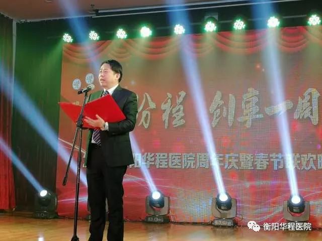 凱歌高奏辭舊歲,豪情滿懷迎新年。2017年即將過去,新年的鐘聲即將敲響,在這辭舊迎新、繼往開來的時刻,我們歡聚一堂,隆重召開衡陽華程醫(yī)院一周年慶典暨春節(jié)聯(lián)歡晚會。首先我代表衡陽華程醫(yī)院有限公司董事會、院務會及全體員工向百忙之中蒞臨現場的各位領導、各位嘉賓表示熱烈的歡迎,向一直以來關心、支持華程的建立與發(fā)展的各級領導、社會各界朋友表示最衷心的感謝,向為華程發(fā)展付出辛勤勞動的全院干部職工表示最誠摯的謝意,并通過你們向一直以來默默支持華程工作的員工家屬表示最美好的新年祝愿。