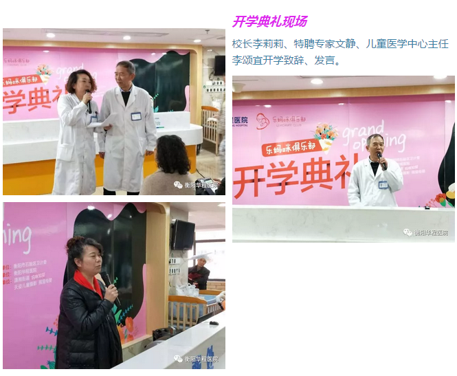 開(kāi)學(xué)典禮上,樂(lè)媽咪俱樂(lè)部校長(zhǎng)、婦產(chǎn)科副主任李莉莉致辭,對(duì)專家團(tuán)隊(duì)進(jìn)行了介紹,婦產(chǎn)中心特聘專家文靜、兒童醫(yī)學(xué)中心主任李頌宜分別發(fā)言。