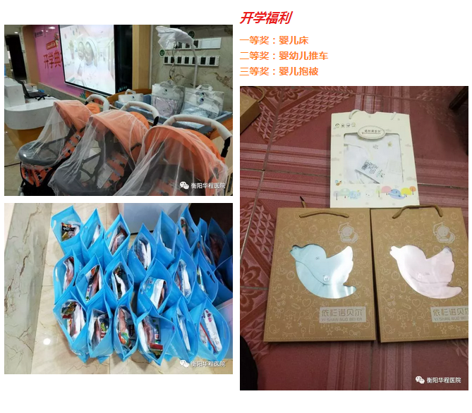 既然是開(kāi)學(xué)典禮,當(dāng)然會(huì)有開(kāi)學(xué)福利,因?yàn)槭侨A程 樂(lè)媽咪俱樂(lè)部首場(chǎng)開(kāi)學(xué),所以開(kāi)學(xué)福利特別豐富:一等獎(jiǎng)嬰兒床、二等獎(jiǎng)嬰幼兒推車、三等獎(jiǎng)嬰兒抱被,簽到獎(jiǎng)嬰兒五件套、互動(dòng)游戲和有獎(jiǎng)問(wèn)題還有獎(jiǎng),最重要的是——只要是在華程醫(yī)院婦產(chǎn)中心生產(chǎn)過(guò)的產(chǎn)婦帶孩子過(guò)來(lái)的都有見(jiàn)面紅包,這些福利讓現(xiàn)場(chǎng)的媽咪們樂(lè)開(kāi)懷。