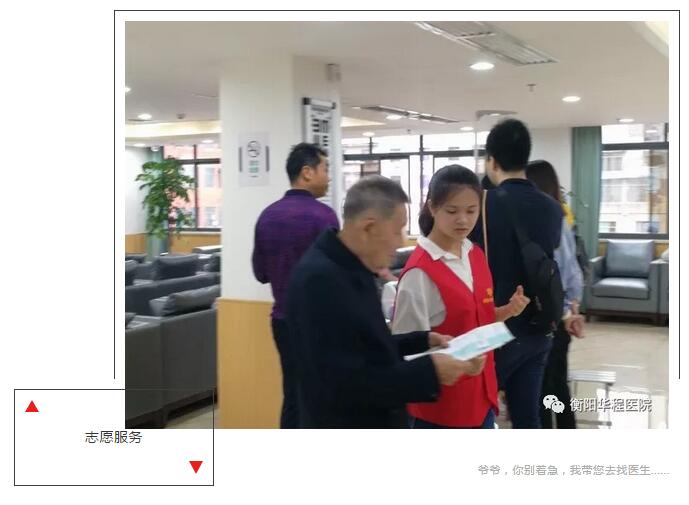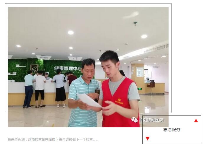 每周六、周日志愿者們會在7:30之前到達(dá)健康管理中心,凡到場體檢的個人和團(tuán)體都會被這眼前的紅馬甲所吸引,很多體檢人員反映:“在以往去過的醫(yī)院中,只有衡陽華程醫(yī)院跟其它醫(yī)療單位不同,在這里大家可以感受到熱情的服務(wù)和更多的體貼入微的照顧,有種像家的溫暖”。