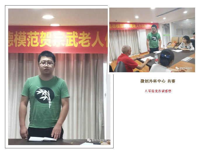 微創(chuàng)外科醫(yī)生80后黨員肖賽在聽完賀老的講課后,激動地說道:“ 做為一名80后的年輕黨員,并且是華程醫(yī)院的一名醫(yī)務(wù)工作者,在這里我覺得這兩點(diǎn)精神最值得我們學(xué)習(xí),‘一個(gè)就是不畏困難  一個(gè)就是敢為人先’ ”。