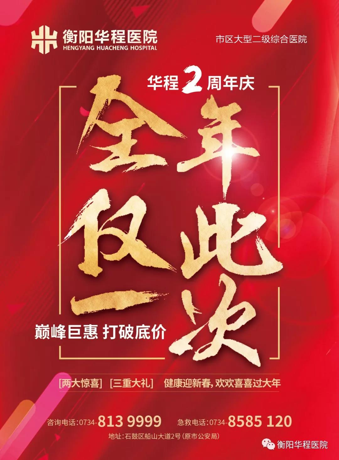 一時間,衡陽華程醫(yī)院建院2周年巨惠活動,傳遍全城的大街小巷,吸引眾多市民參與。