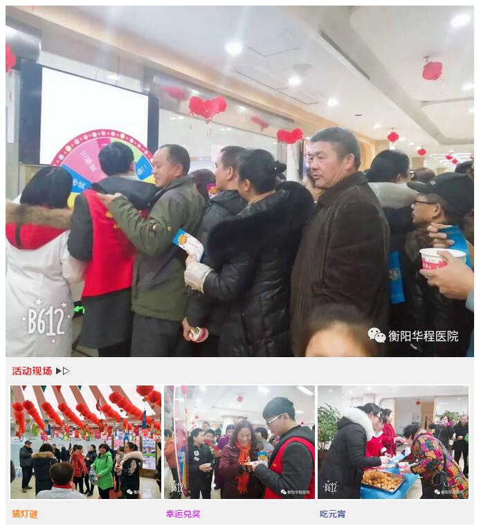 來自荷池路社區(qū)和長青社區(qū)的居民們猜著燈謎,吃著醫(yī)院精心準(zhǔn)備的元宵,參加幸運搖獎,大家都特別開心。居民賀老說:“參加這樣的活動我們都非常高興,在這里我們既拿了獎品,又吃了元宵,這不但給我們的春節(jié)增加了氣氛,還活躍了我們居民的文化生活。”