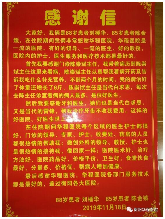 照片上的這位85歲的陳奶奶11月19日和自己88歲的老伴一起將這封感謝信送給了門診客服部,理由是:去了多家醫(yī)院,只有在這里被感動(dòng)到了......