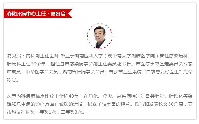 為此,小編也特意走訪的這位從事內(nèi)科疾病臨床診療工作近40年,在消化、呼吸、感染病特別是各類肝炎、肝硬化等疑難和危重病的診療方面有較深的造詣的易炎啟主任,聽聽他是怎么說。
