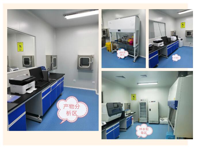 實(shí)驗(yàn)室嚴(yán)格按照醫(yī)學(xué)生物安全實(shí)驗(yàn)室建筑技術(shù)標(biāo)準(zhǔn)建設(shè),采用標(biāo)準(zhǔn)化、合理分區(qū)負(fù)壓氣流設(shè)計(jì),分為四區(qū)三通道。四區(qū)分別為試劑準(zhǔn)備區(qū)、標(biāo)本處理區(qū)、擴(kuò)增區(qū)、產(chǎn)物分析區(qū);三通道分別為標(biāo)本送檢通道、工作人員通道、污物通道;做到“各區(qū)獨(dú)立、注意風(fēng)向、杜絕污染、方便工作”。PCR配備有:全自動(dòng)核酸提取儀BK-HS96、實(shí)時(shí)熒光定量PCR分析儀Lepgen-96、醫(yī)用冷藏箱、高速臺(tái)式離心機(jī)、恒溫金屬浴、旋渦混勻器、Mini離心機(jī)、生物安全柜、潔凈工作臺(tái)、高壓滅菌鍋、紫外線消毒車、紫外消毒機(jī)等。可實(shí)現(xiàn)單日單采檢測(cè)量1200人/次。